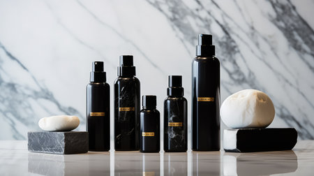 luxury black skincare bottles