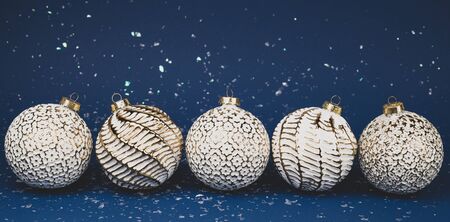 Christmas white balls on a blue background.