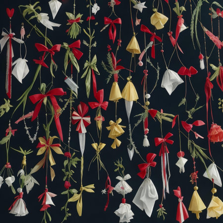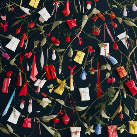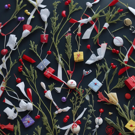 Capture the spirit of the holidays with this arrangement of colorful vintage ornaments on a light marble surface, perfect for festive decorations or seasonal celebrations.