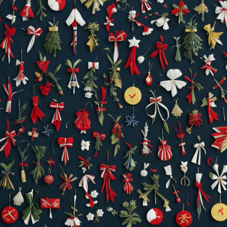 A flat lay arrangement of simple Scandinavian-style Christmas ornaments AI generated illustration
