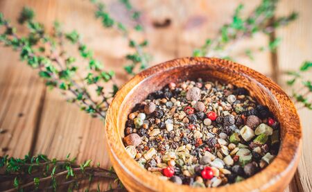 Dry Spices Mix Background with Thyme and Black Pepper