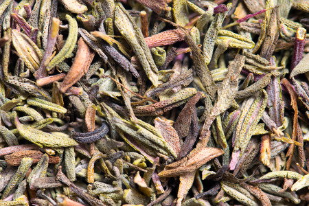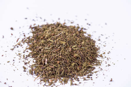 Macro photo of thyme dried leaves . Closeup 1:1