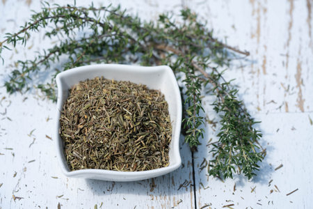 dried and fresh Thymus vulgaris delicious kitchen herbs