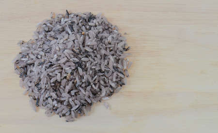 Raw black rice on the board