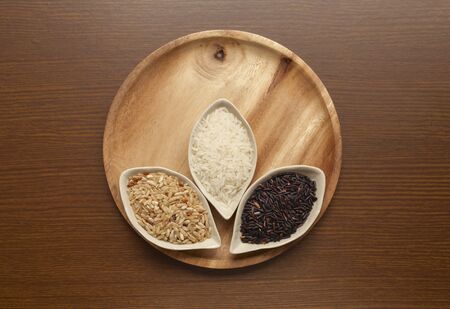 Thai food, Jasmine, Brown, Red, and Rice berry rice. Rice OR Food background concept.