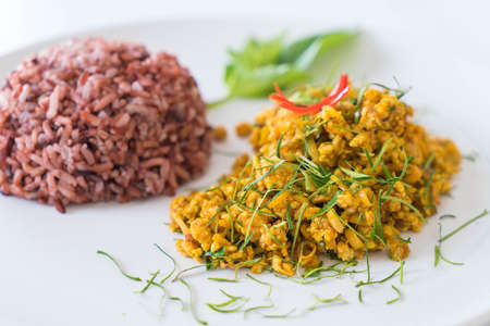 Stir Fried Minced Pork with Hot Yellow Curry and berry rice
