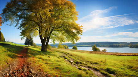 Sunny autumn landscape charming rural idyllic panorama captured on a beautiful sunny day in fall