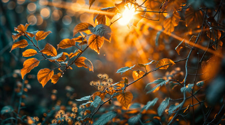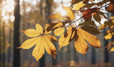 Vibrant autumn leaves are bathed in warm sunlight, creating a beautiful scene of seasonal change and natural beauty.