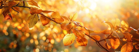 Golden Autumn Leaves Glowing in the Warm Sunlight, Creating a Serene and Tranquil Mood.