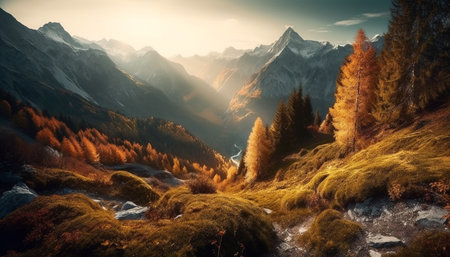 Majestic mountain range, tranquil scene, autumn beauty generated by artificial intelligence