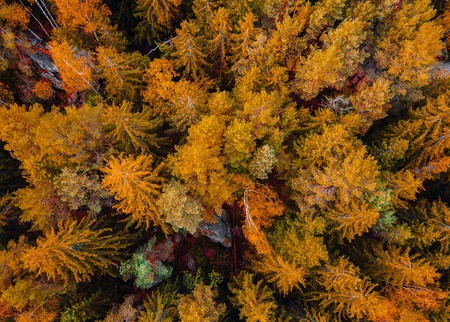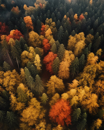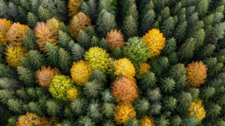 A breathtaking aerial view of an autumn forest in beautiful colors