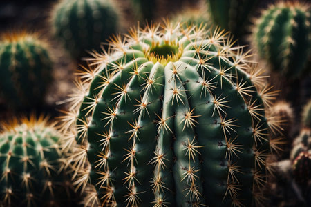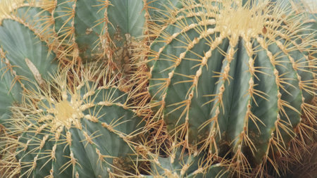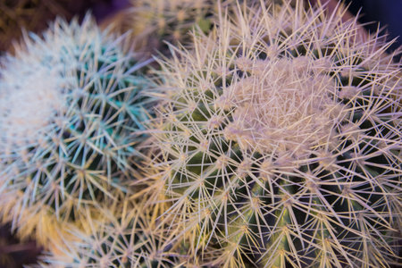 Close up of cactus with sharp thorns in botanical garden