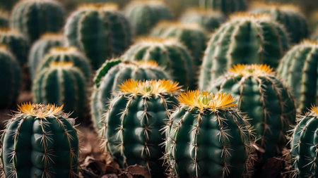 Close up image of Cactuses in a botanical garden.