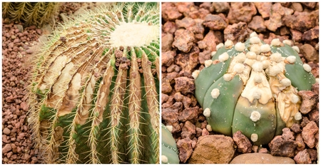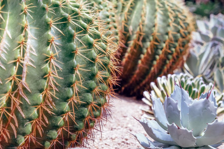 Cactuses in a botanical garden, close-up.