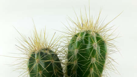 Cactus with yellow spikes on a white background. Close up.