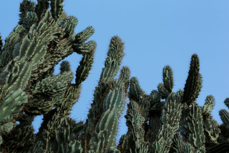 Beautiful green cactus growing against blue sky