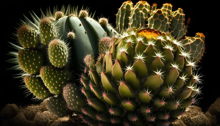 Sharp thorns on succulent plant spike growth generated by artificial intelligence