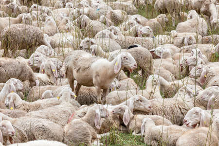 Flock of sheep in the mountains of the Pyrenees. Choose from pregnant females.