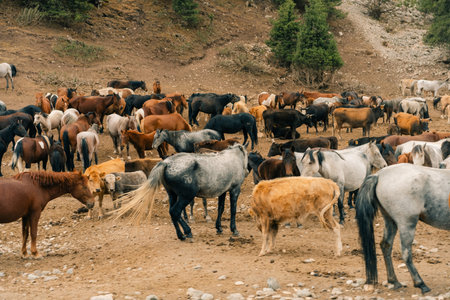 a herd of horses in the Tien Shan Mountains. High quality photo