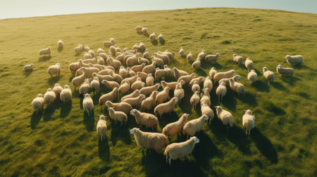 Flock of sheep in field, free farm animals, rancher