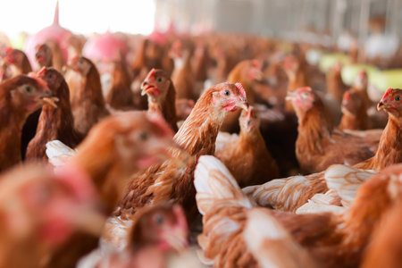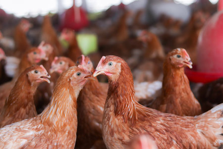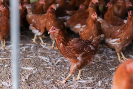 Close up of brown chicken in chicken farm
