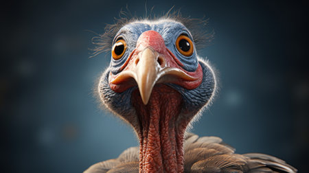 a lifelike 3d character of a turkey with comical bulging eyes, created in the style of hyper-realistic sci-fi. this character showcases intense emotions and subtle expressions inspired by the barbizon school. felt creations and overexposure techniques are incorporated to enhance texture and depth. ai generated