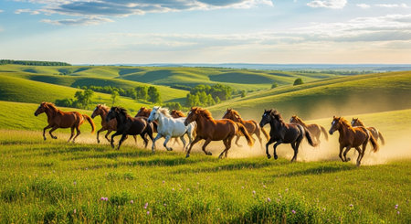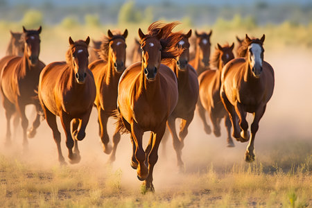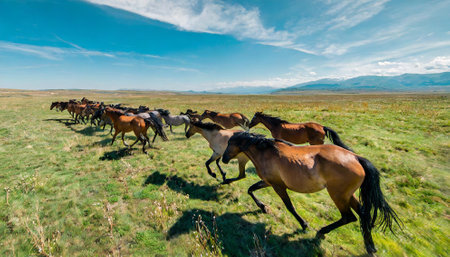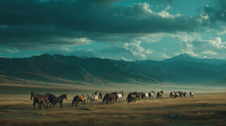 A herd of wild horses galloping across a plain their freedom evident in every stride created with Generative AI