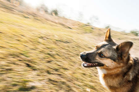 Angry Aggressive Mad Dog Nervous Dog Running In Attack Outdoors In park on camera