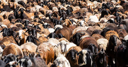 Brown, white and black sheep in Kyrgystan..