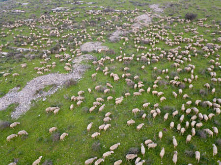 aerial drone view of sheep flock