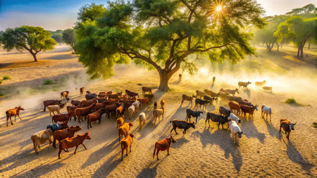Rural life thrives as a dedicated farmer tends to his cattle. Concept Farming, Cattle, Rural Life, Agriculture, Livestock