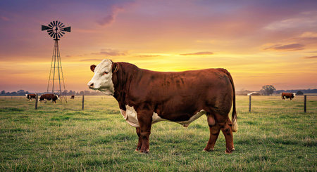 Playful Hereford Calf Frolicking in Sunlit Meadow, Embracing the Joy of Nature s Beauty
