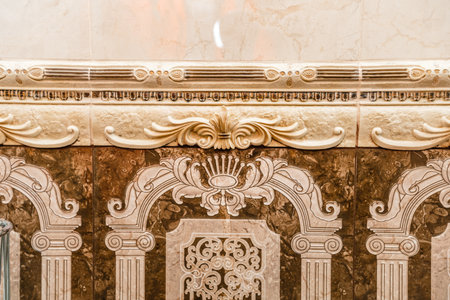 A decorative border on a wall, with a design that includes a lot of detail and a sense of elegance