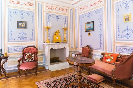 St. Petersburg, Russia - August 30, 2017: Interior of Olga's pavilion in Peterhof on Islands. It was a gift of Emperor Nicholas I to his daughter the Grand Duchess Olga Nikolaevna