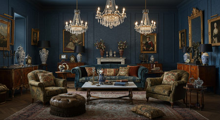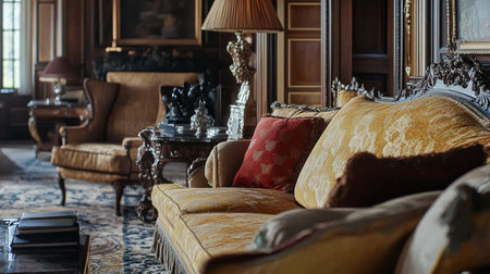 Discover the beauty of an elegant vintage living room featuring plush seating, ornate fixtures, and a warm ambiance perfect for relaxation and gatherings.
