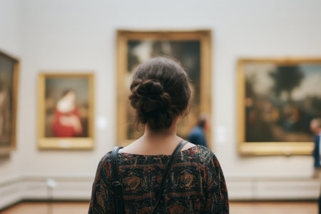 Tourist enjoying masterpieces from the renaissance period in a museum, appreciating culture and history