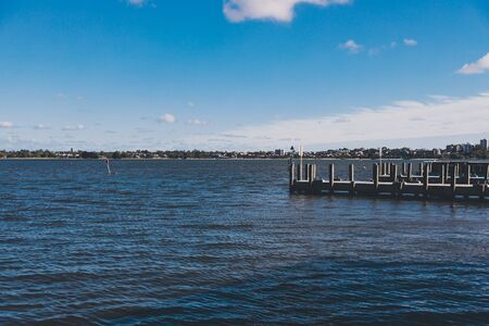 PERTH, WESTERN AUSTRALIA - Januaray 2nd, 2020: view of the Swan River and coastline from the Riverside Boulevard in Perth CBD