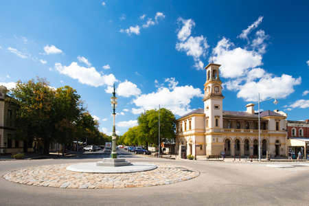 East elevation and tower of the Court House built in 1893 in extravagant Federation Romanesque style, in Bairnsdale, Victoria, Australia