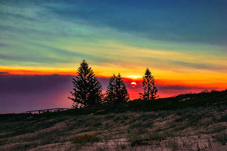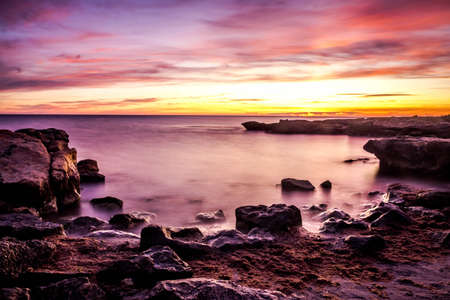 Colorful orange and purple sunset on the Pacific Ocean in La Jolla, San Diego California.