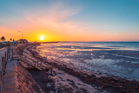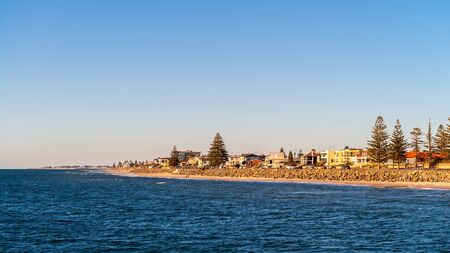 Coastline of Adelaide viewed from Brighton jetty at sunset, South Australia