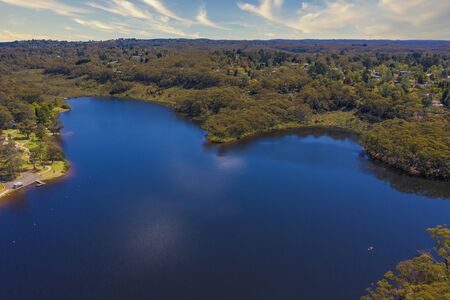 Aerial view of a residental c-shaped island in Sydney, Australia