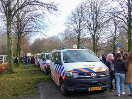 Malieveld, The Hague, the Netherlands - February 7 2019: students at anti climate change protest in The Hague with banners walking through the city