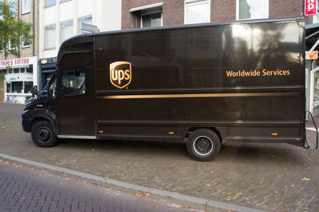 Arnhem, Netherlands - October 29, 2019: UPS lorry parked in the street. United Parcel Service is the world’s largest package delivery company.
