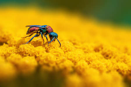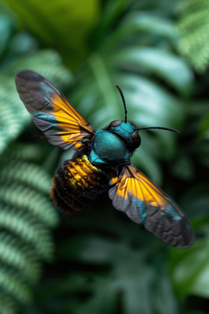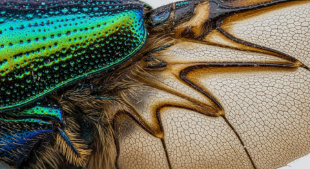 Close up of a vibrant insect showcasing intricate details, vivid colors, and captivating textures ideal for nature and science illustrations