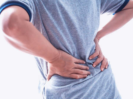 a person with back pain holding the painful area with the hand