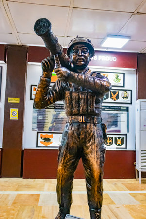 indian soldier statue showing shoulder missiles at war memorial shot is taken at jaisalmer war memorial rajasthan india on Jan 25 2023.