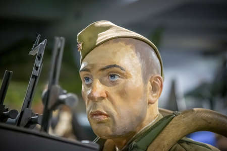 Krasnogorsk district, Moscow region, Russia - July 11, 2021: Mannequin symbolizing the times of the World War II. Vadim Zadorozhny Museum of Technology. One of the largest antique vehicle museums in Europe
