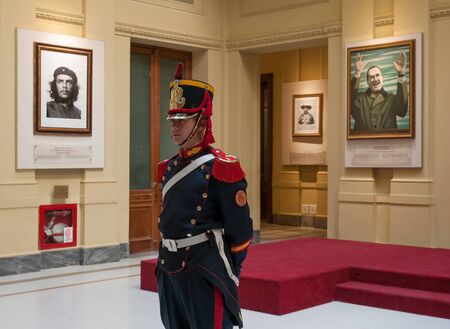 Buenos Aires, Argentina - April 9 2011: The interior of the Government house, also known as pink house, and the guard, a soldier of the colonial era.