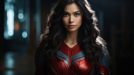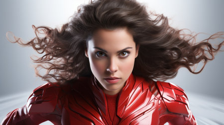 Digital artwork of beautiful woman in superhero costume, close-up portrait, hyper realistic, isolated on white background