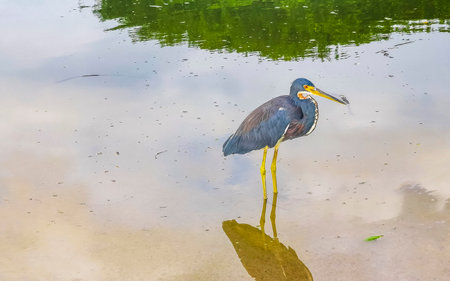 Tricolor heron egret bird in lake river water in Zicatela Puerto Escondido Oaxaca Mexico.